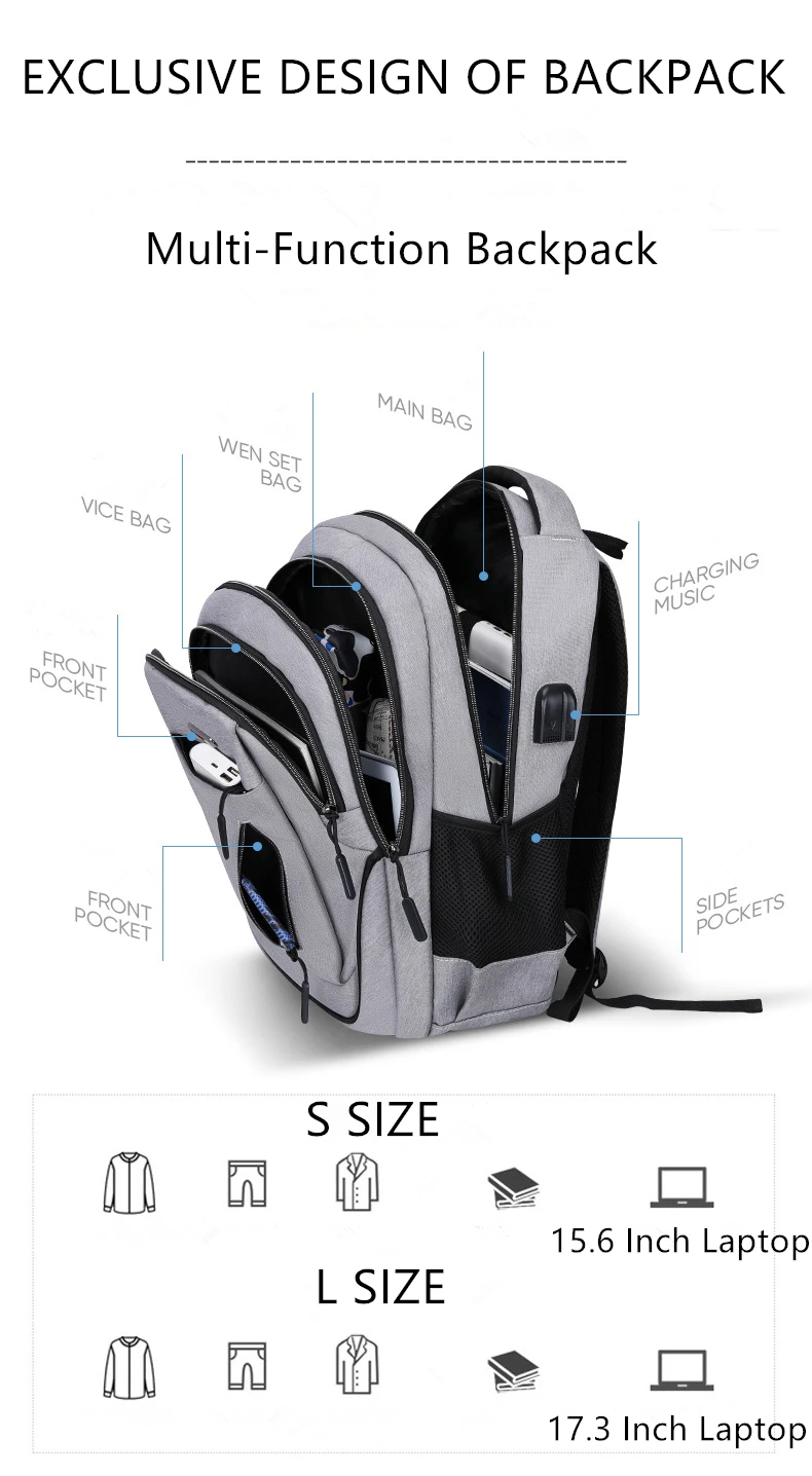 3: 15.6 Inch /17.3 Inch Laptop Backpack For Men Women Computer School Travel Business Bags With USB Earphone Charging Port Day Pack