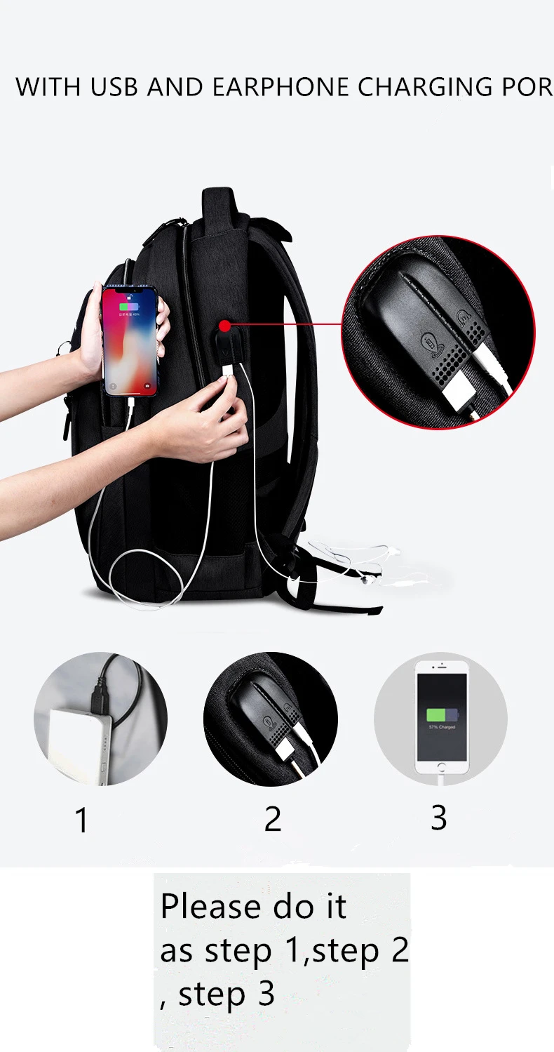 4: NOTICE -This is backpack, it just with USB And Earphone charging port, about the cable or external it need be matched by selves. please understand