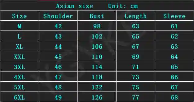 There are 6 sizes can be chosen: M, L, XL, 2XL, 3XL, 4XL.