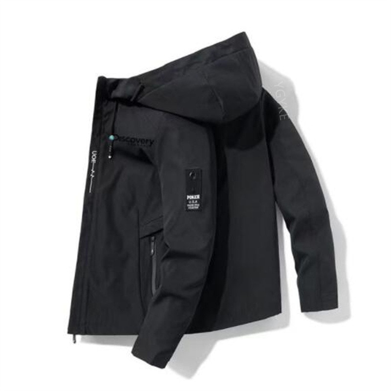 Spring Autumn Men Jacket Solid Color Hooded Long Sleeves Loose Pockets Zipper Hood Outerwear Streetwear