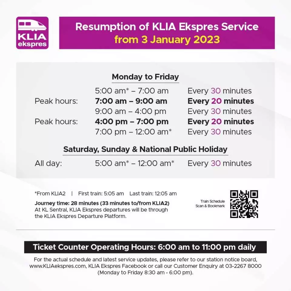 Resumption of KLIA Ekspres Service from 3 Jan 2023